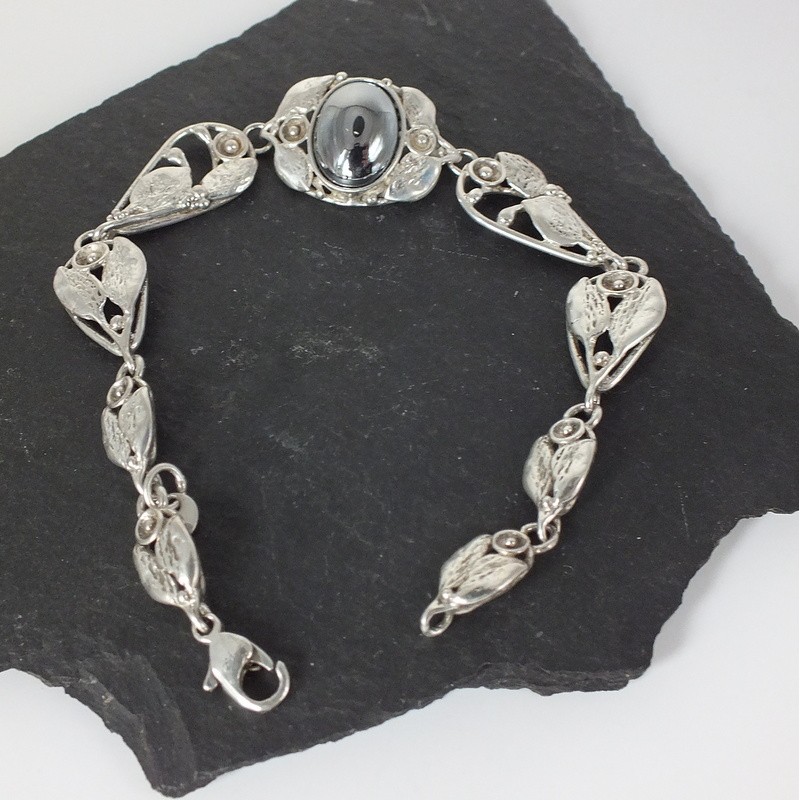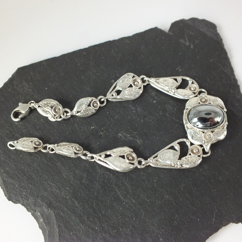 Bransoletka srebrna z hematytem sygnowana znakiem firmy Agat Kłodzko i próbą państwową 925.