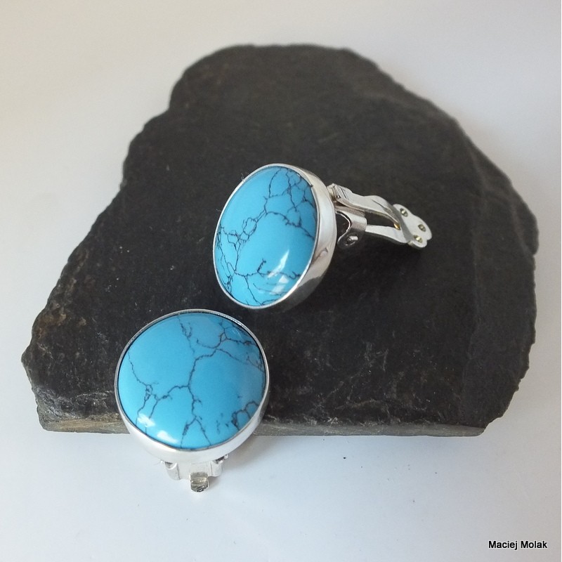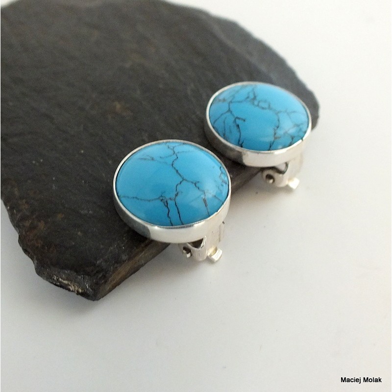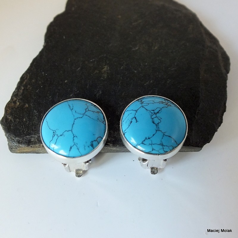 Eleganckie klipsy srebrne z turkusem rekonstruowanym o żywym,niebieskim kolorze.