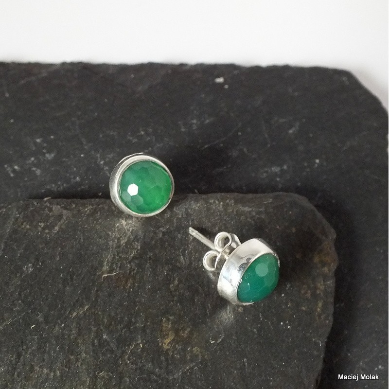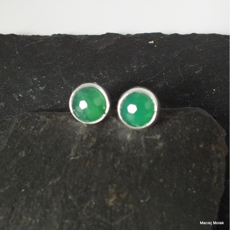 Kolczyki z zielonego, fasetowanego agatu.