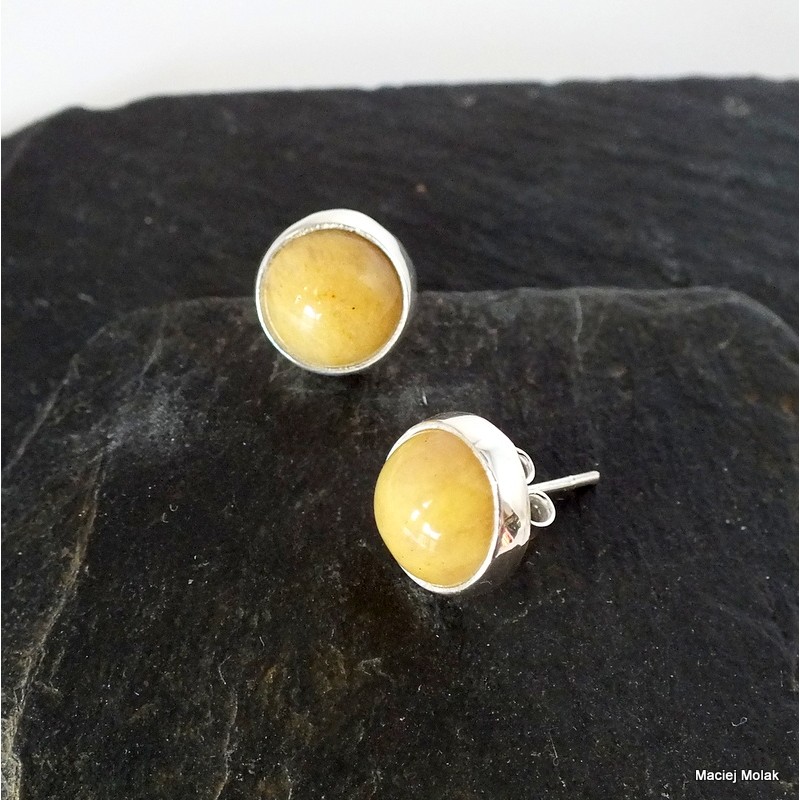Nieduże kolczyki na sztyfcie z kalcytem.
