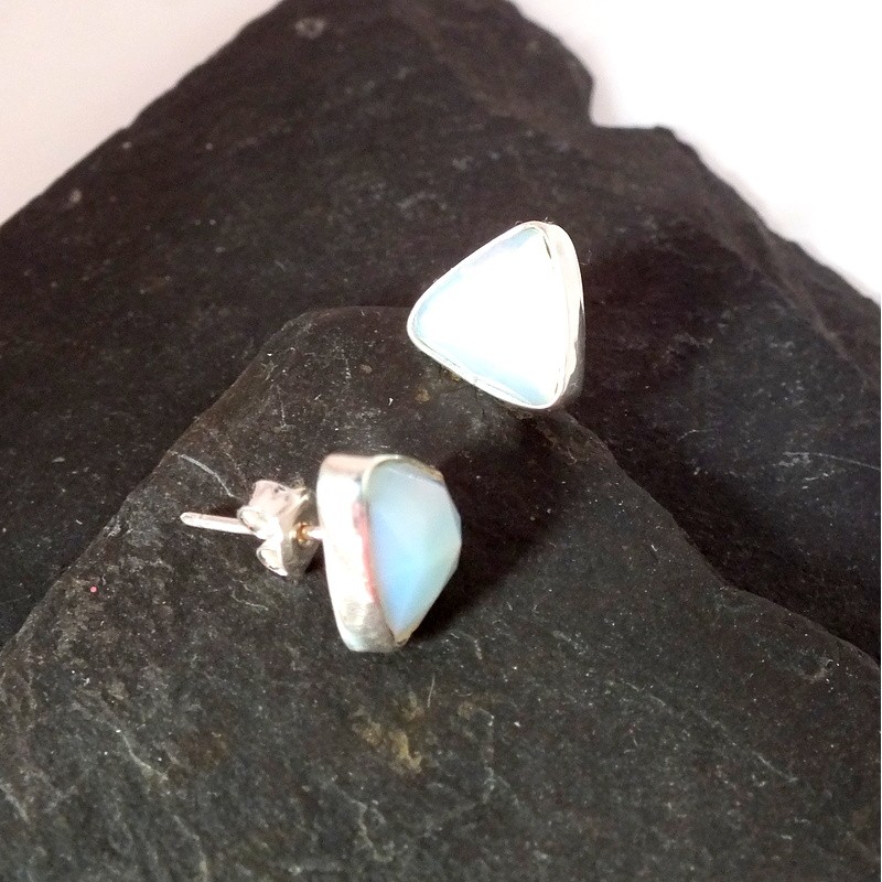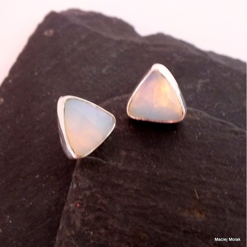 Nieduże kolczyki na sztyfcie z fasetowanym opalitem. Takie niezobowiązujące trójkąciki.