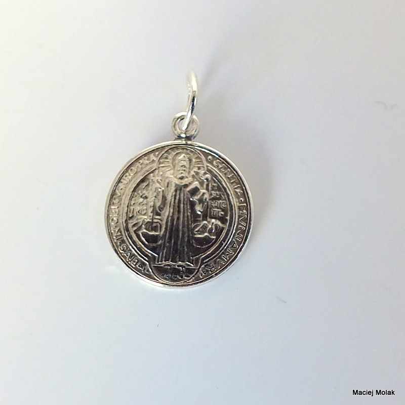 411. Srebrny medalik-Święty Benedykt
