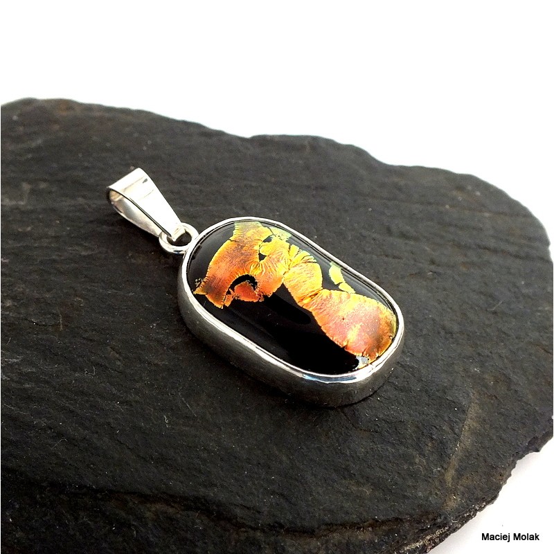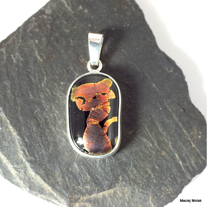 415. Srebrny wisiorek ze szkłem-kot